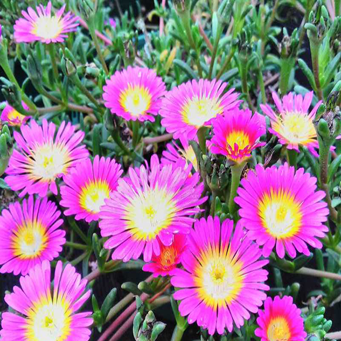 Le Delosperma doit être planté au printemps ou à l’automne dans un sol bien drainé, sec, voire rocailleux. Il prospère particulièrement sur les murets, les rocailles et les talus bien exposés. Si votre région connaît des températures inférieures à -10 °C, on conseille de le cultiver en pot ou en vasque pour pouvoir le protéger en hiver si nécessaire. Il est primordial de lui offrir un emplacement ensoleillé et chaud pour favoriser sa croissance et sa floraison abondante. Quelques arrosages réguliers en cas de sécheresse prolongée seront utiles. Pensez à enlever les fleurs fanées afin de stimuler la production de nouvelles fleurs.
